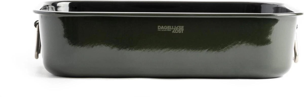 De Dagelijkse Kost Emaille Braadslede – 39,5×28,6cm warmt snel op en houdt de warmte goed vast. Ideaal voor wie graag energiezuinig kookt! De braadslede is gemaakt van hoogwaardig geëmailleerd staal. Dat is stevig, maar toch licht. De prachtige olijfgroene kleur is een blikvanger in elke keuken.