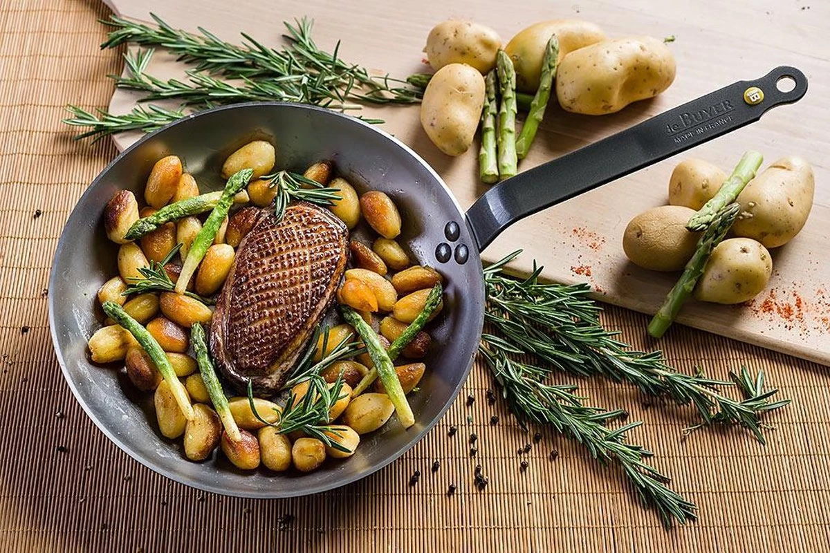 Deze Mineral B Element koekenpan van De Buyer staat garant voor topkwaliteit. De pan heeft een organische constructie die voor 99% uit zuiver ijzer bestaat. IJzer is een 100% natuurlijk mineraal materiaal. De pan kan hoge temperaturen bereiken, waardoor hij uitermate geschikt is voor afdichten, aanbraden en grillen. De koekenpan is voorzien van een natuurlijke antiaanbakbescherming. Er is gegarandeerd geen coating toegepast. De pan wordt donkerder naarmate hij meer gebruikt wordt. Dit is bevorderlijk voor de prestaties en zal de functionaliteit van de natuurlijke antiaanbakeigenschappen stimuleren. Het is een ecologisch recyclebaar product. Tijdens de productie zijn er geen chemicaliën toegevoegd.