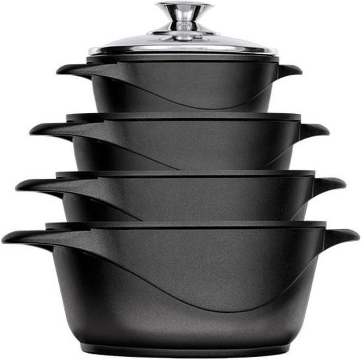 Deze prachtige pannenset van het merk Smile geeft iedere keuken een upgrade. De pannen zijn namelijk geschikt voor iedere kookplaat, waaronder inductie, gas en elektrisch. Ook wanneer jij switcht van huis of keuken kun jij deze pannen dus gewoon blijven gebruiken. Het zwarte materiaal en de glazen deksels zorgen voor een luxe en stijlvolle uitstraling, welke kleur jouw keuken ook is. Naast het mooie uiterlijk zijn de pannen ook nog eens van topkwaliteit; ze zijn allen voorzien van een anti-aanbaklaag, roestvrij stalen knoppen en dikke wanden voor een gelijkmatige warmteverdeling. De perfecte pannenset dus om in te koken, frituren, stoven óf braden.