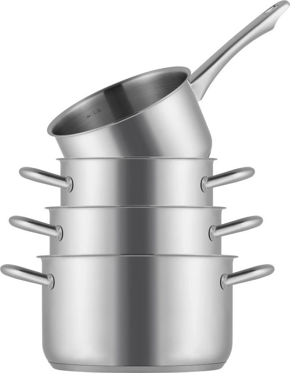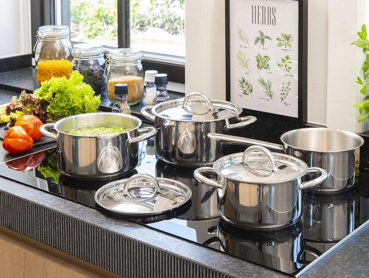 Zeg maar gedag tegen irritante roestvlekken bij je huidige pannenset! Onze pannenset met stijlvolle iconische vorm zijn gemaakt van 18/10 roestvrij staal. De pannen zijn dankzij ons verfijnde productieprocess ook nog met hoge kwaliteit gepolijst.